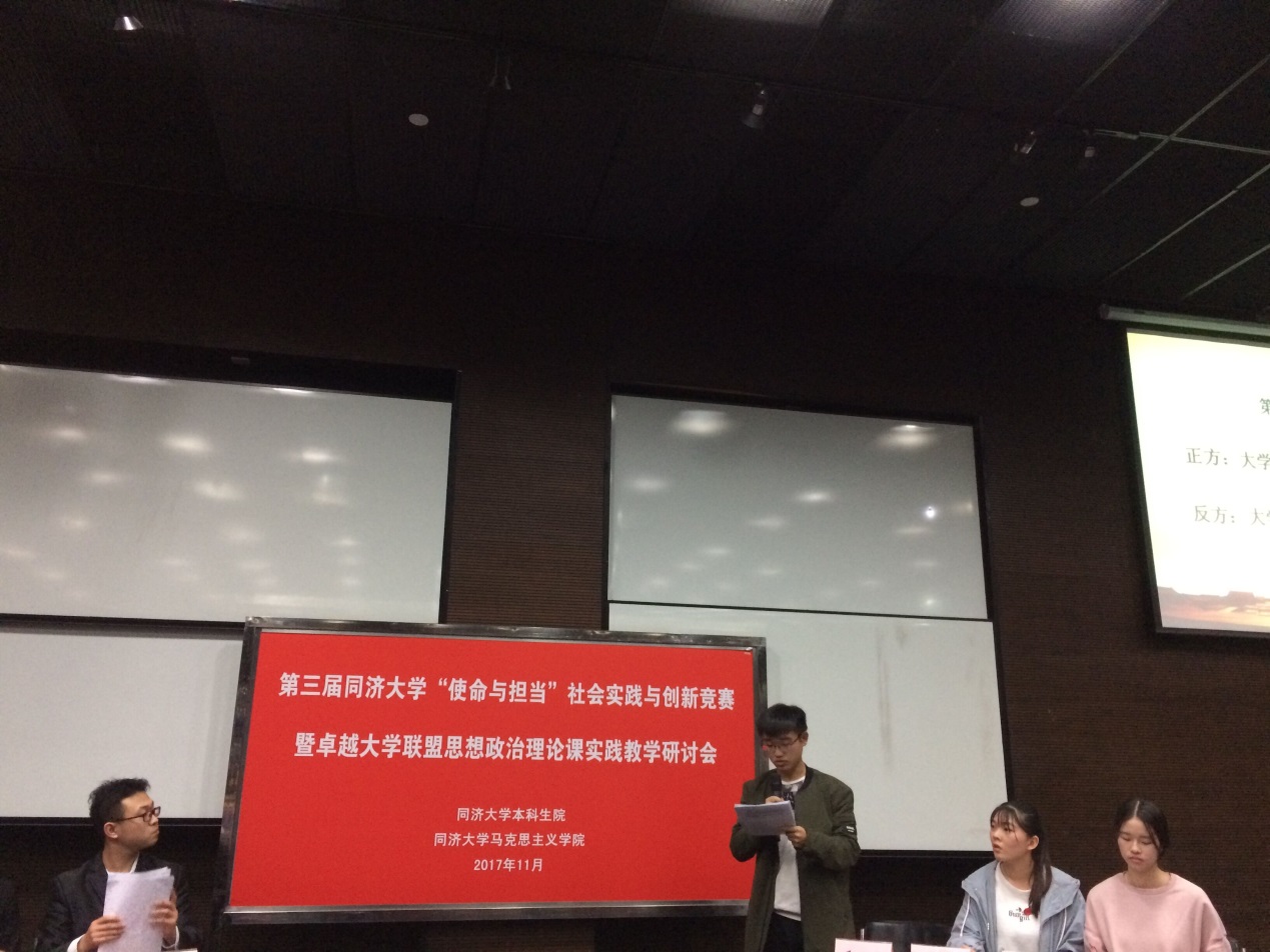 “‘使命与担当’社会实践与创新竞赛”作为同济大学思想政治课实践教学的创新探索,力求使思政课的思想教育与大免费性爱直播综合素质的提升相结合,以面向本科生的4门思政课——《马克思主义基本原理概论》、《毛泽东思想和中国特色社会主义理论体系概论》、《中国近现代史纲要》、《思想道德修养与法律基础》为基础,将“辩论赛”这一大免费性爱直播喜闻乐见的形式引入到竞赛中,辩题注重理论与重大现实问题相结合,注重世界观、认识论与方法论的结合,极大地激发了同济学子思考和表达的愿望,受到了同学们的热情响应。